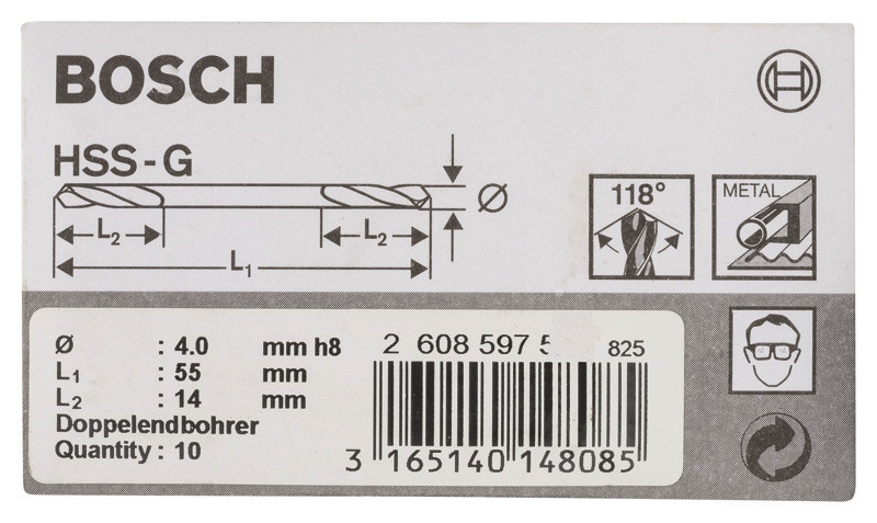 PRO Metal HSS-G Spiralbohrer mit Doppelklinge, 4 x 14 x 55 mm, 10-tlg.