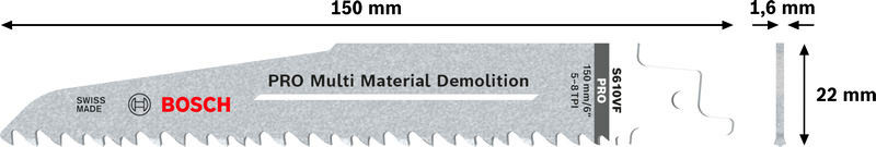 PRO Multi Material Demolition S610VF Säbelsägeblatt, 1,6 x 22 x 150 mm, 5-tlg.