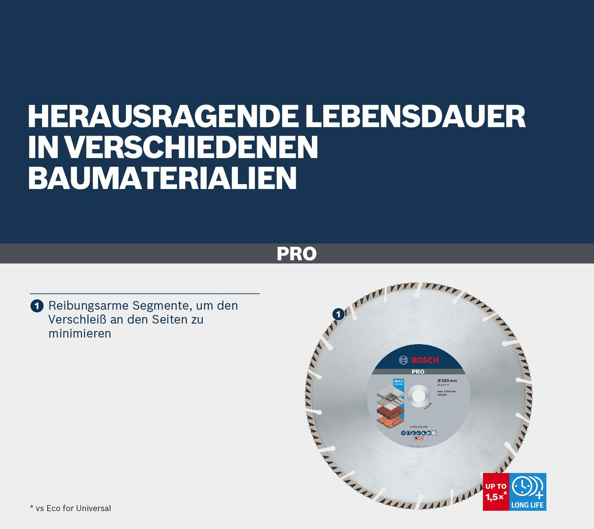 Herausragende Lebensdauer in verschiedenen Baumaterialien! Reibungsarme Segmente, um den Verschleiß an den Seiten zu minimieren Für Profis auf der Baustelle ist eine Allzweck-Diamant-Trennscheibe unverzichtbar. Wir haben die PRO Multi Material Diamant-Trennscheibe stark genug gemacht, dass sie durch jedes Material dringen kann.