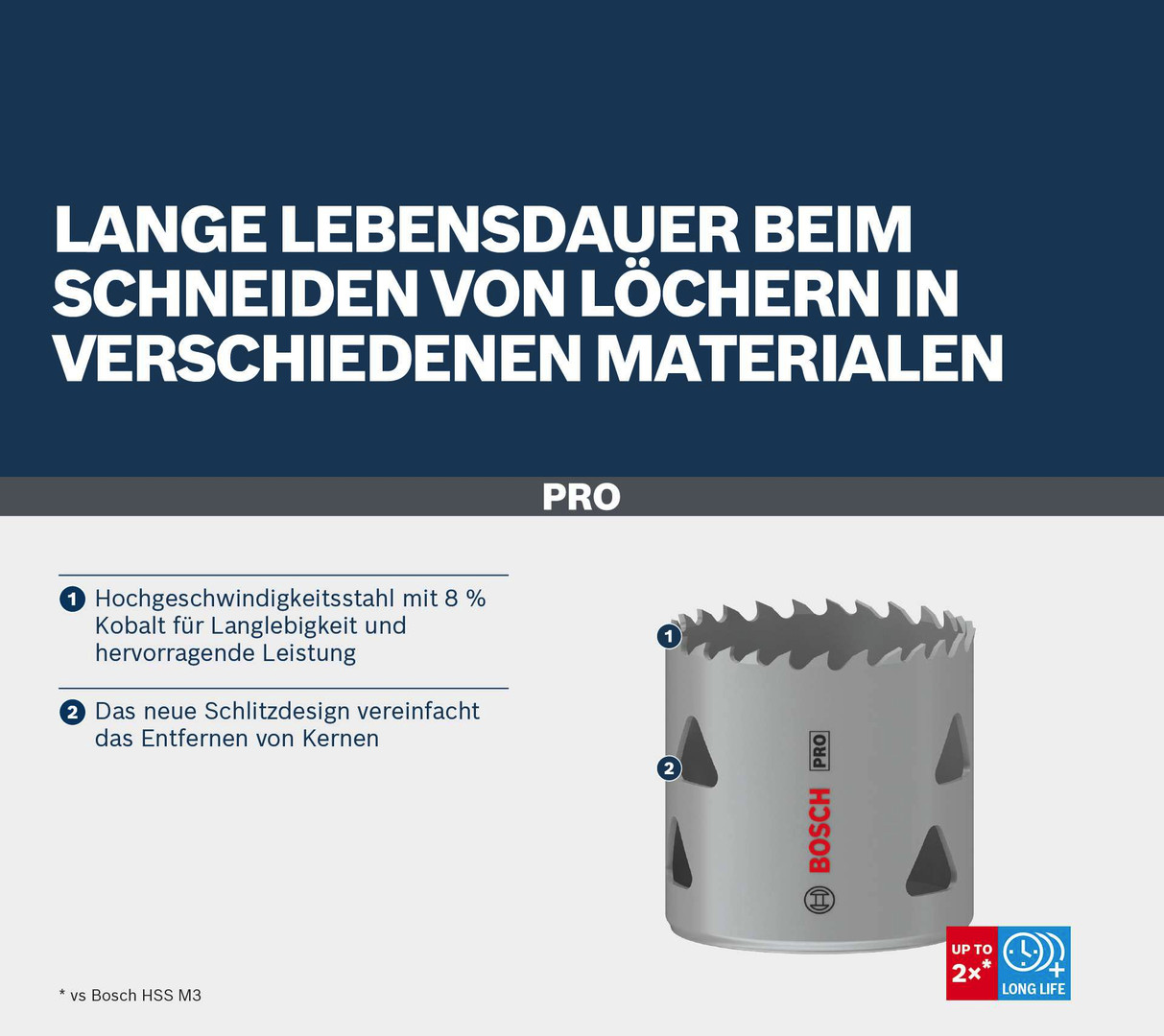 Lange Lebensdauer beim Schneiden von Löchern in verschiedenen Materialen! Hochgeschwindigkeitsstahl mit 8 % Kobalt für Langlebigkeit und hervorragende Leistung Für Elektriker und Sanitärinstallateure, die im Innenausbau arbeiten, sind Lochsägen von unschätzbarem Wert für die Installation von Rohren, Schaltkästen und Einbauleuchten. Im Idealfall hast du nur eine Art von Lochsäge für alle Herausforderungen und Materialien, die der Innenausbau mit sich bringt. Die Lösung: die PRO Multi Material.