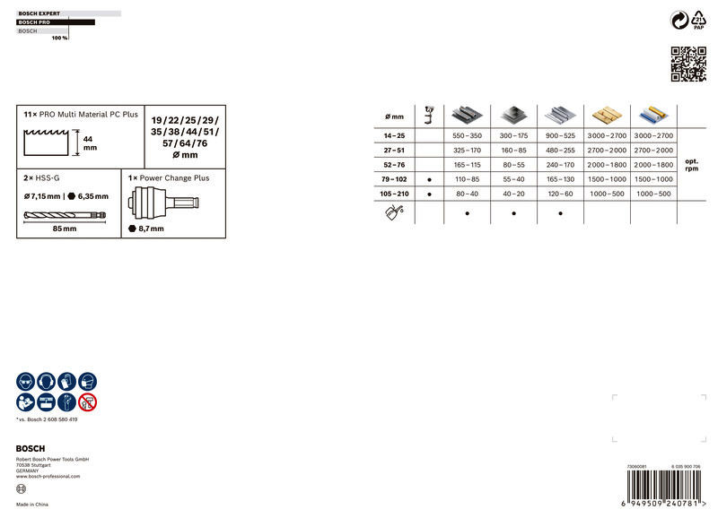 PRO Multi Material PC Plus Lochsägen-Set, 19-76 mm,14-tlg.