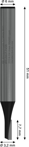 PRO Nutfräser, einschneidig, Ø 3,2 x L 7,7, Schaft 6 mm