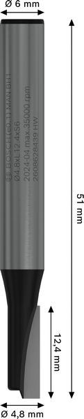 PRO Nutfräser, einschneidig, Ø 4,8 x L 12,4, Schaft 6 mm