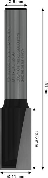 PRO Nutfräser, zweischneidig, Ø 11 x L 19,6, Schaft 8 mm