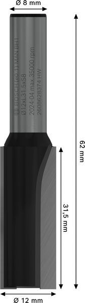 PRO Nutfräser, zweischneidig, Ø 12 x L 31,5, Schaft 8 mm