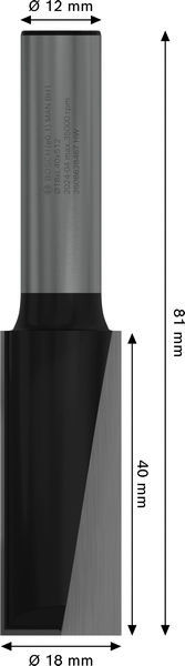 PRO Nutfräser, zweischneidig, Ø 18 x L 40, Schaft 12 mm