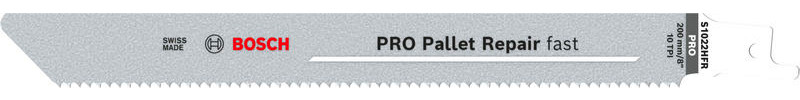 Herausragende Lebensdauer in Paletten! Bi-Metall Blatt: Kombiniert harte Zähne mit flexiblem Blattkörper Die Reparatur von Paletten ist eine schwierige, aber unverzichtbare Aufgabe. Profis, die sich auf diese Aufgabe spezialisiert haben, werden das PRO Pallet Repair fast S1022HFR Sägeblatt zu schätzen wissen.