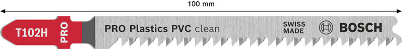 Präzises Schneiden von Kunststoffen! Konisch geschliffener Blattkörper für feine, saubere Schnitte Zum Schneiden von thermoplastischem Material ist ein scharfes und effizientes Stichsägeblatt erforderlich, das die Wärmeentwicklung reduziert und ein Schmelzen des Materials verhindert. Wir haben das PRO Plastics PVC and PMMA clean T102H entwickelt, um saubere Schnitte in thermoplastischen Platten, Rohren und Profilen zu ermöglichen.