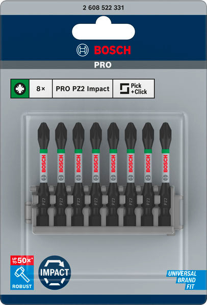 PRO Pozidriv Impact Bit, PZ2, 55 mm, 8-tlg.