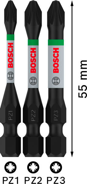PRO Pozidriv Impact Bit Set, PZ1, PZ2, PZ3, 55 mm, 3-tlg.