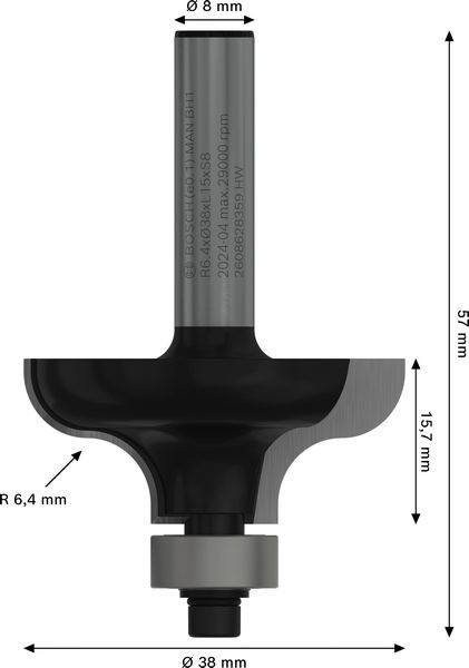 PRO Profilfräser, R 6,4, Schaft 8 mm