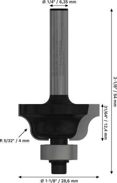 PRO Profilfräser klassisch, R 1/32", Schaft 1/4"