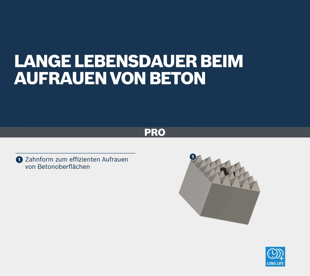 Lange Lebensdauer beim Aufrauen von Beton! Zahnform zum effizienten Aufrauen von Betonoberflächen Benötigst du eine zuverlässige und langlebige Stockerplatte zum Aufrauen von Stein-, Beton- und Asphaltoberflächen? Dann ist die PRO SDS max-4C Stahl-Stockerplatte die richtige Wahl. Wir haben sie mit langlebigen Stahlzähnen verstärkt, damit sie die nötige Stabilität erhält, die du für die Erledigung deiner Arbeit benötigst.