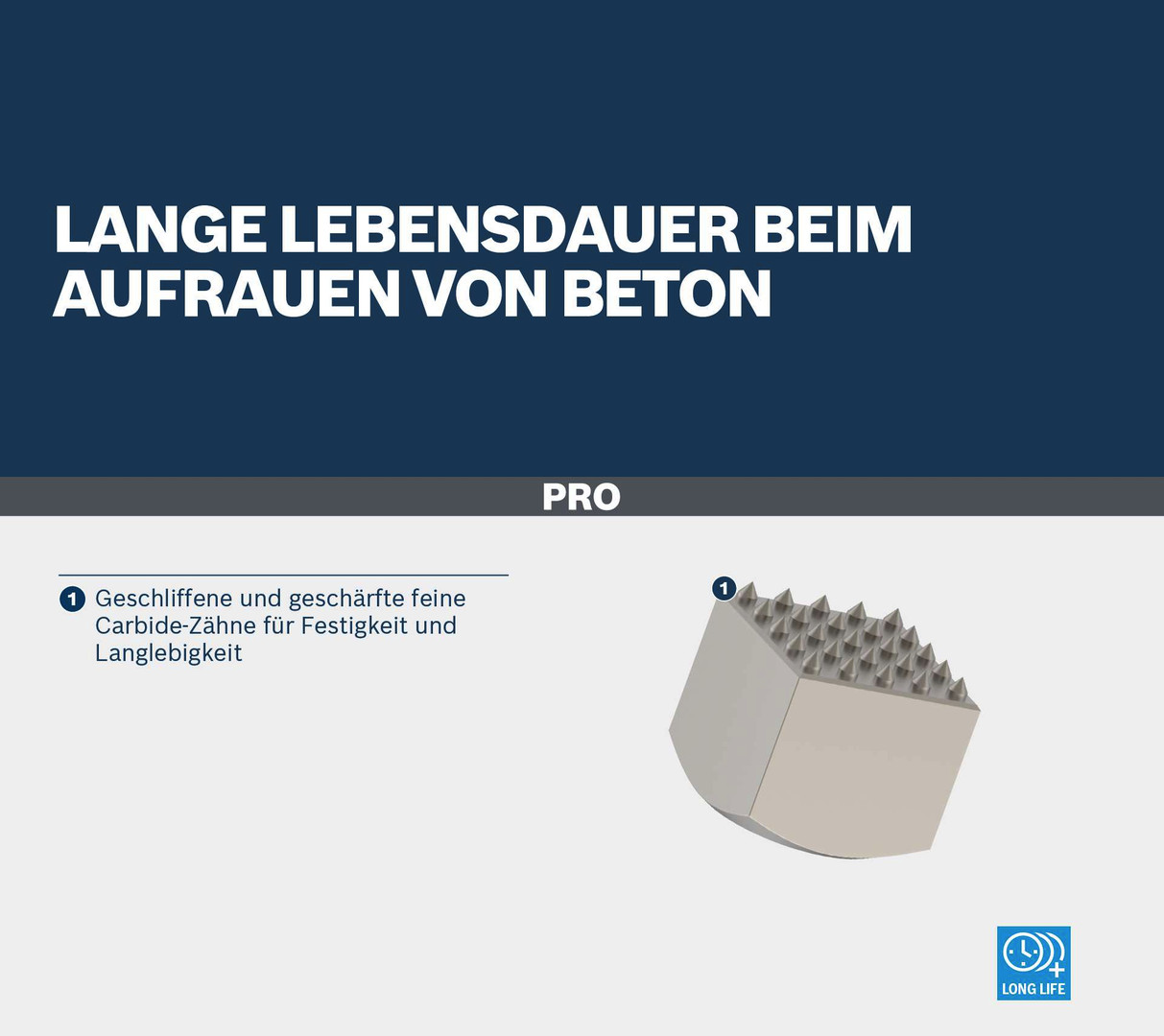 Lange Lebensdauer beim Aufrauen von Beton! Geschliffene und geschärfte feine Carbide-Zähne für Festigkeit, Langlebigkeit und Präzision Benötigst du eine zuverlässige und langlebige Stockerplatte zum Aufrauen von Stein-, Beton- und Asphaltoberflächen? Dann ist die PRO SDS max-5C Stockerplatte die richtige Wahl. Wir haben sie mit Carbide-Wolfram verstärkt, damit sie die nötige Stabilität erhält, die du für die Erledigung deiner Arbeit benötigst.