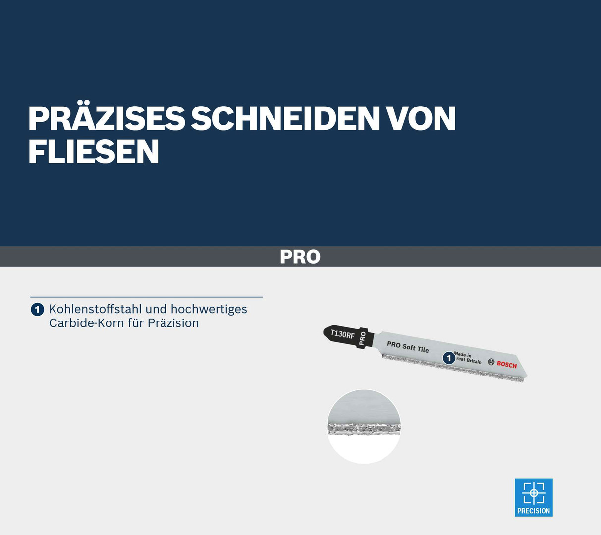 Präzises Schneiden von Fliesen! Kohlenstoffstahl und hochwertiges Carbide-Korn für Präzision Bist du Renovierer, der präzise Ausschnitte in weichen Wandfliesen machen muss? Das PRO Soft Tile T130RF Stichsägeblatt wurde entwickelt, um diese Aufgabe leichter zu machen.
