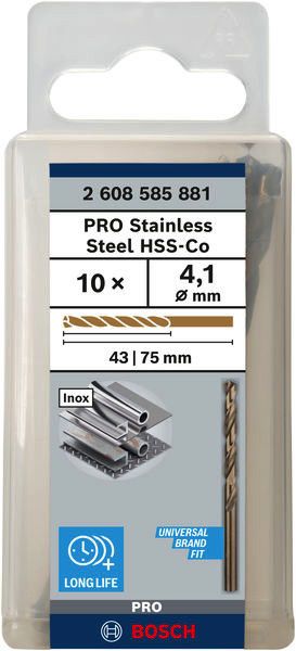 PRO Stainless Steel HSS-Co Spiralbohrer, 4,1 x 43 x 75 mm, 10-tlg.