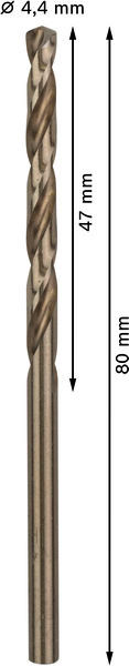 PRO Stainless Steel HSS-Co Spiralbohrer, 4,4 x 47 x 80 mm, 10-tlg.