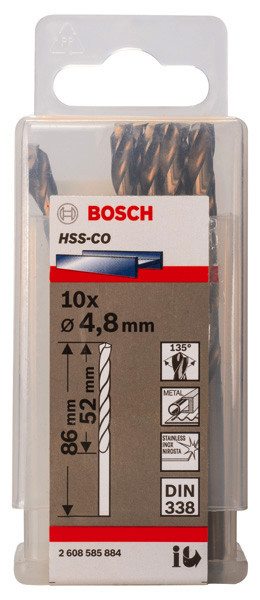PRO Stainless Steel HSS-Co Spiralbohrer, 4,8 x 52 x 86 mm, 10-tlg.