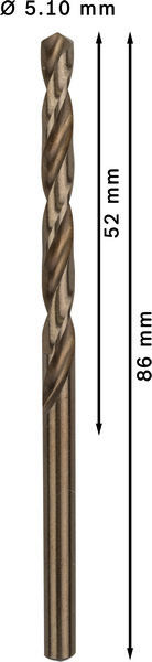 PRO Stainless Steel HSS-Co Spiralbohrer, 5,1 x 52 x 86 mm, 10-tlg.