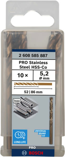 PRO Stainless Steel HSS-Co Spiralbohrer, 5,2 x 52 x 86 mm, 10-tlg.