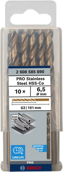 PRO Stainless Steel HSS-Co Spiralbohrer, 6,5 x 63 x 101 mm, 10-tlg.