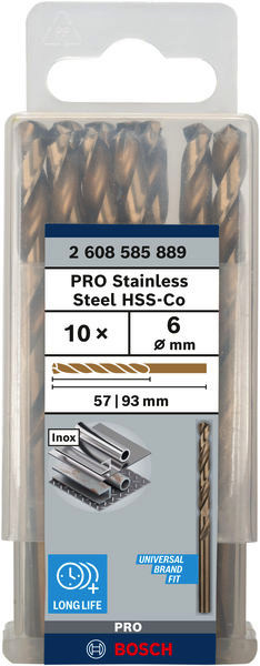 PRO Stainless Steel HSS-Co Spiralbohrer, 6 x 57 x 93 mm, 10-tlg.