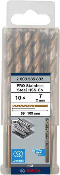 PRO Stainless Steel HSS-Co Spiralbohrer, 7 x 69 x 109 mm, 10-tlg.