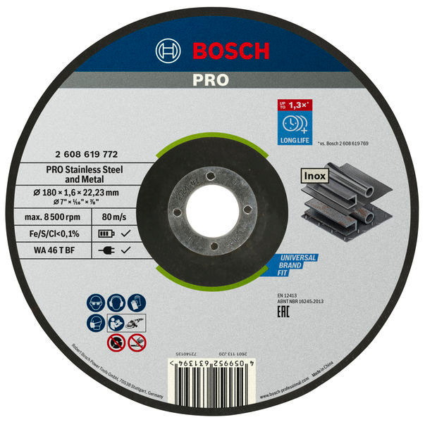 PRO Stainless Steel and Metal Trennscheibe, 180 x 1,6 x 22.23 mm, gekröpft