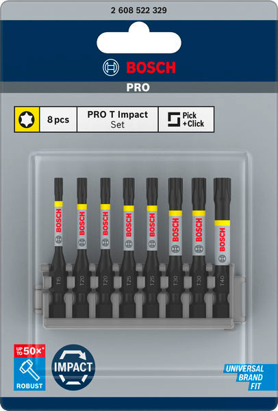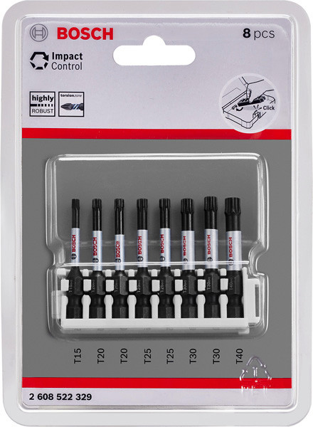 PRO Torx Impact Bit Set, T15; T20(x2); T25(x2); T30(x2); T40, 55 mm, 8-tlg.