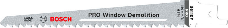 Herausragende Lebensdauer beim Schneiden von Fensterrahmen! Bi-Metall Blatt: Kombiniert harte Zähne mit flexiblem Blattkörper Fenstermonteure greifen normalerweise zur Säbelsäge, wenn sie vor dem Einbau neuer Fenster Rahmen ausschneiden müssen. Das PRO Window Demolition S611DF Blatt wurde speziell für diese Aufgabe entwickelt.
