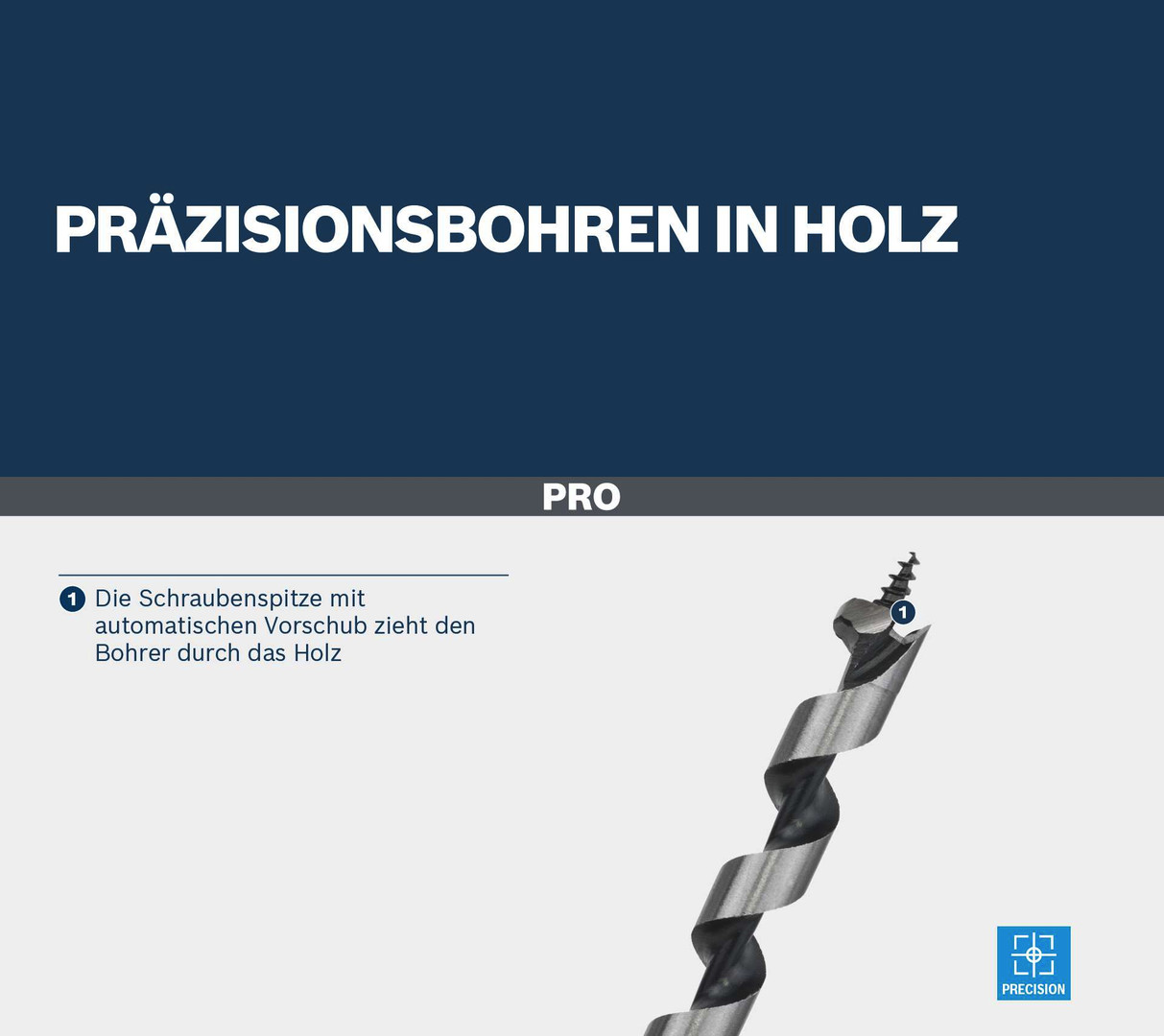 Präzisionsbohren in Holz! Die Schraubenspitze mit automatischen Vorschub zieht den Bohrer durch das Holz Benötigst du einen zuverlässigen Holzschlangenbohrer, mit dem du schneller präzise Löcher in Holz bohren kannst? Dann ist der PRO Wood Holzschlangenbohrer die richtige Wahl. Wir haben ihn so entwickelt, dass tiefe Löcher genau dort angesetzt werden, wo sie sein sollen.