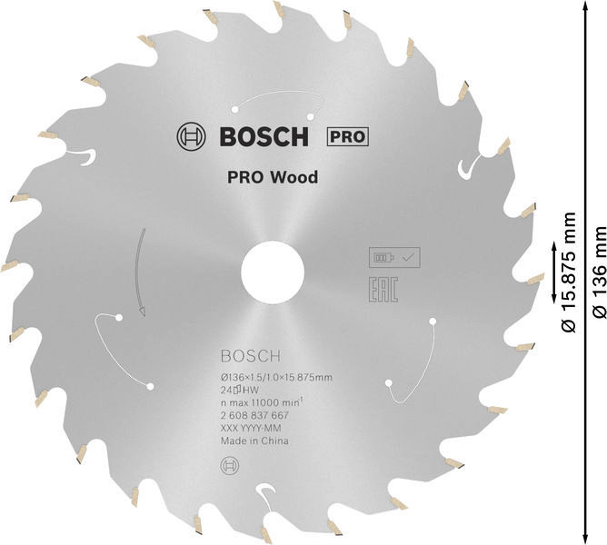 PRO Wood cordless Kreissägeblatt, 136 x 1,5 x 15,875 mm