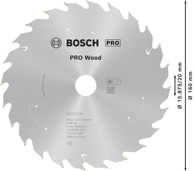 PRO Wood cordless Kreissägeblatt, 160 x 1,5 x 20 mm, T24