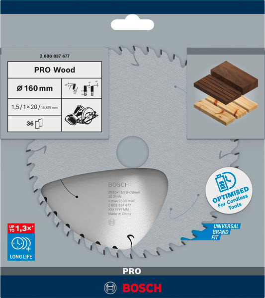 PRO Wood cordless Kreissägeblatt, 160 x 1,5 x 20 mm, T36