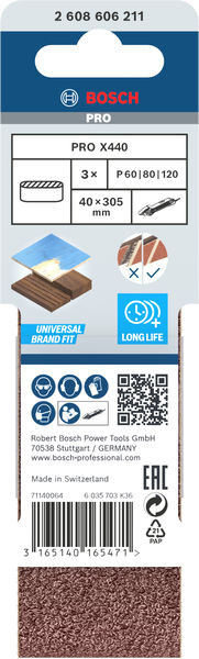 PRO X440 Schleifband, 40 x 305 mm, G60, G80, G120, 3-tlg.