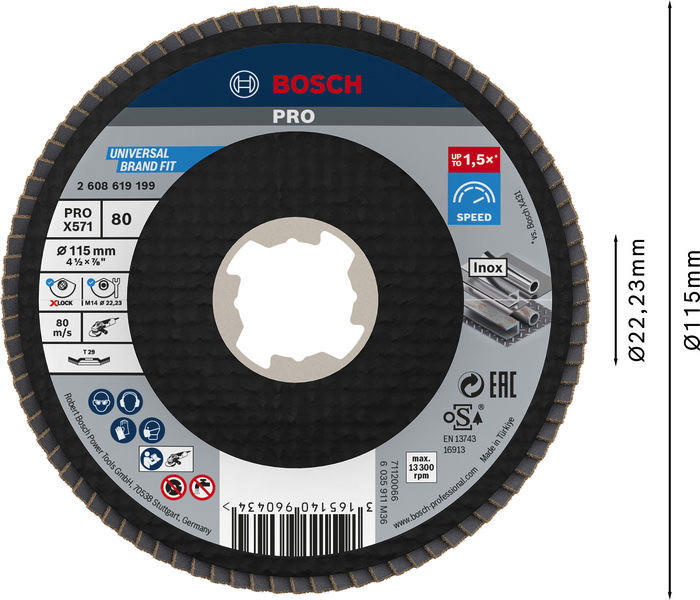 PRO X571 Fächerschleifscheibe X-Lock, abgewinkelt, 115 mm, K80