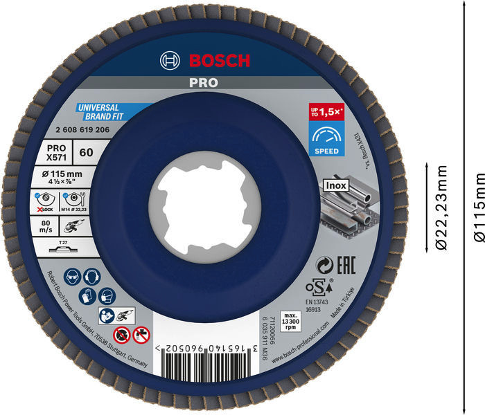 PRO X571 Fächerschleifscheibe X-Lock, gerade, 115 mm, K60