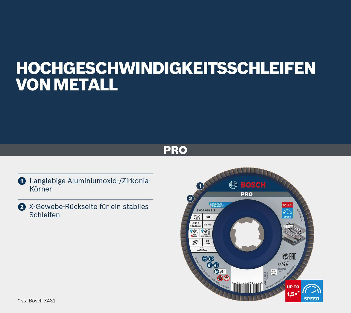 PRO X571 Fächerschleifscheibe X-Lock, gerade, 125 mm, K120