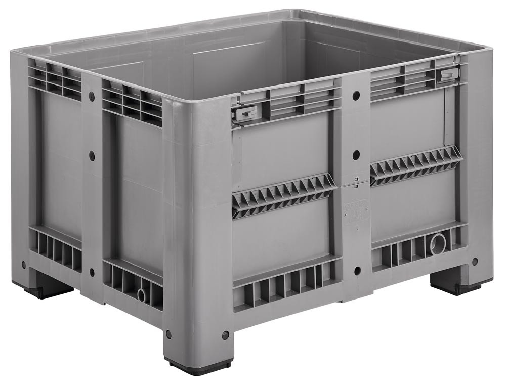 Palettenbox, PE, BxTxH 1200x1000x760 mm, Volumen 610 l, Farbe grau, 4 Füße, Boden + Wände geschlossen, Seitenklappe
