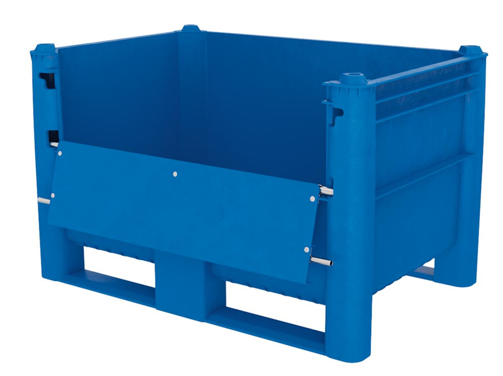 Palettenbox aus PE, Wände und Boden geschlossen, mit 1 Seitenklappe BxH 955x290 mm, Gewicht 32 kg, Volumen 500 l, BxTxH 1200x1000x740 mm