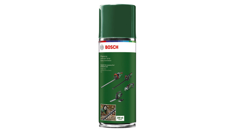 Systemzubehör Pflegespray. Langzeitpflege von Gartengeräten. Hilft beim Aufrechterhalten einer konstant hohen Leistung über einen langen Zeitraum. Reinigt und pflegt Gartengeräte und sorgt für ihren optimalen Betrieb. Pflegespray (1 609 200 399). Karton