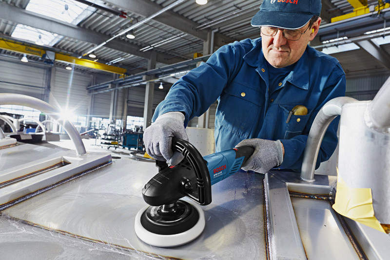 Polierer GPO 14 CE, Der kabelgebundene Polierer GPO 14 CE Professional bietet eine bequeme Handhabung und ein hohes Drehmoment für einen schnellen Arbeitsfortschritt und optimale Resultate. Der ergonomische Handgriff mit Softgrip und das geringe Gewicht von nur 2,5 kg sorgen für eine bequeme Handhabung während der Arbeit. Sein leistungsstarker 1.400-Watt-Motor mit Sanftanlauf ermöglicht kontinuierliches Arbeiten auf großen Oberflächen, während sich die Drehzahlvorwahl ideal für das Polieren verschiedenster Materialien eignet. Der GPO 14 CE Professional verfügt außerdem über eine konstante Drehzahl, direkte Motorkühlung, Überlastschutz und Wiederanlaufschutz. Zusatzgriff (ET-Nr. 2 602 025 067). D-Griff (ET-Nr. 1 619 P07 563)