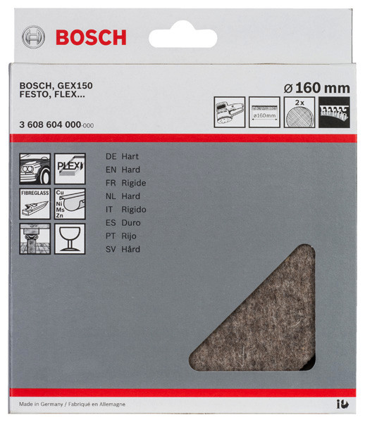 Polierfilz für Exzenterschleifer, hart, Klett, 160 mm, 2er-Pack