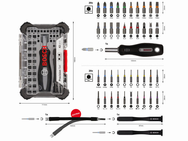 Präzisions-Schrauberbit-Set, Display, 5x 43-tlg