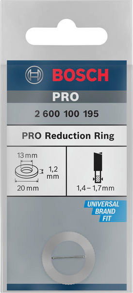 Verkleinern der Aufnahme von PRO Kreissägeblättern! Du musst Kreissägeblätter mit unterschiedlichen Aufnahmelöchern auf der Aufnahme deiner Kreissäge montieren? Verwende den PRO Reduction Ring für PRO Kreissägeblätter, um die Größe des Aufnahmelochs deiner Kreissägeblätter zu reduzieren.