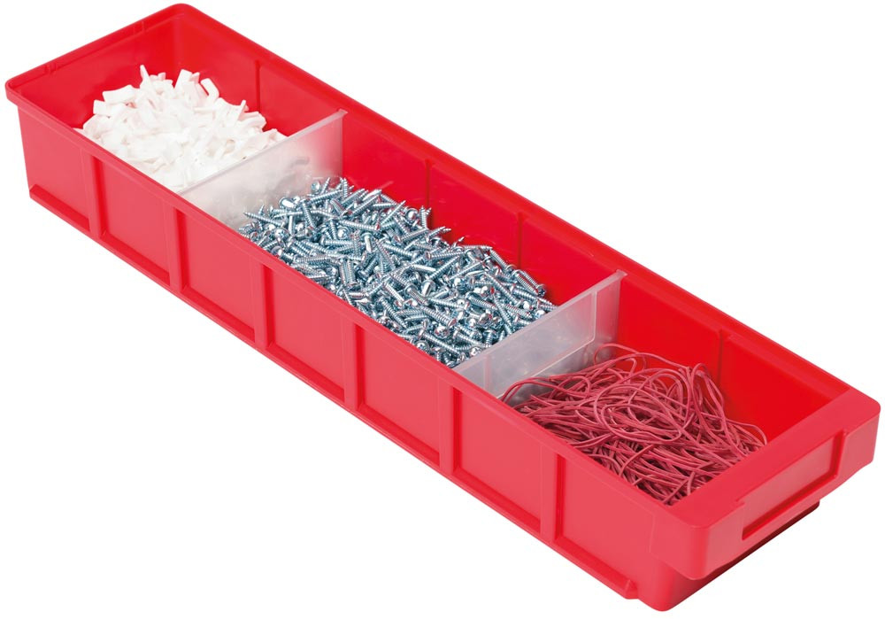 Regalkasten, PP, BxTxH 152x600x83 mm, Farbe rot, VE 10 Stück, inkl. 1 Trennwand