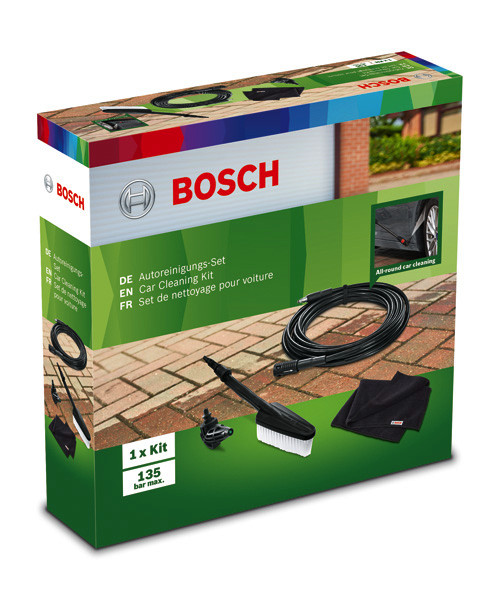 Systemzubehör Reinigungs-Set für die Autowäsche. Auto-Reinigungsset für die höchst effektive Autowäsche. Niederdruckbürste kann mit Reinigungsmittel verwendet und schnell an die Pistole angeschlossen werden. Verlängerungsschlauch für größere Reichweite und höhere Flexibilität. Feste 90°-Spritzdüse für schwer zugängliche Stellen. Mikrofasertuch zum Abschluss der Arbeiten im Lieferumfang enthalten. Geeignet für EasyAquatak 100LL/110/120, UniversalAquatak, AQT 33-10, AQT 33-11, AQT 35-12, AQT 37-13, AQT 40-13, AQT 42-13. 6 m Hochdruckschlauch. 90°-Düse. Kleines Microfasertuch. Kartonschachtel
