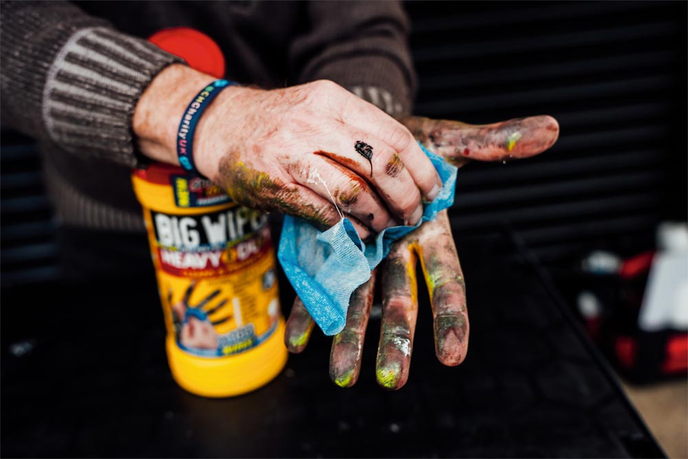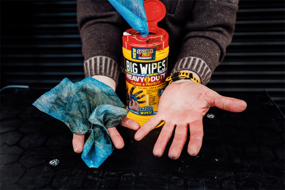 Doppelseitige Scheuer- und Reinigungstücher für schnellste und porentiefe Reinigung ∙ Rauhe Seite entfernt selbst hartnäckigste Verschmutzungen ∙ Weiche Seite saugt den Schmutz auf ∙ Aus Heavy-Duty Quad-Textil, nimmt 40% mehr Schmutz auf als herkömmlihe Tücher ∙ Dermatologisch getestet - frei von Parabenen, Phosphaten und Formaldehyd ∙ Frei von künstlichen Konservierungsstoffen ∙ Aloe Vera, Glyserin, Lanolin und Vitamin E Schützen und Pflegen die Haut ∙ Zum Entfernen von Farbe, PU-Schaum, Bitumen, Klebstoffe, Silikon, Öl, Fett und vieles mehr ∙ Dose á 100 Tücher