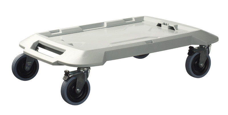 Rollerplatte L-BOXX Roller, Der L-BOXX Roller ermöglicht einen bequemen Transport im Rahmen des Bosch Mobility Systems. Seine integrierte Klickverbindung sorgt für eine feste Fixierung gestapelter L-BOXX-Elemente für einen sicheren Transport. Seine Belastbarkeit von 100 kg garantiert Stabilität und Robustheit. Dank seiner vier Lenkrollen (zwei feststellbar) ist der L-BOXX Roller äußerst komfortabel zu bewegen. Das ist die ideale Transportlösung für L-BOXX-Elemente und L-Cases.