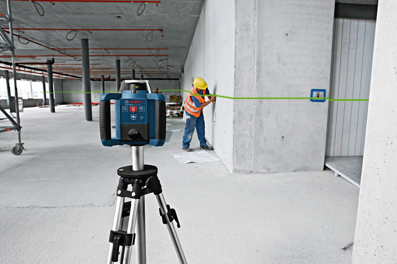 Rotationslaser GRL 300 HVG + LR 1 G in L-BOXX, Hervorragende Sichtbarkeit für Anwendungen im Innenbereich, Grüne Laserlinie: bis zu vierfach bessere Sichtbarkeit gegenüber einer roten Linie, Schnell einstellbar im horizontalen und vertikalen Einsatz durch automatische Selbstnivellierung von 8 % (± 5°), Die zuschaltbare Schockwarnfunktion verhindert Nivellierfehler bei Erschütterungen oder Vibrationen, Laser-Empfänger LR 1G Professional (0 601 069 700). Halterung (1 608 M00 70F). L-BOXX 238 (1 600 A01 2G2). 1 x wiederaufladbare Batterie 9V 7HR9V VARTA. 2 x wiederaufladbare Batterie 1,2V HR20 (D) VARTA. 1 x VARTA Ladegerät